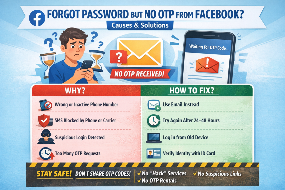 In this article, we’ll explain why Facebook doesn’t send the OTP and how to recover your account safely.