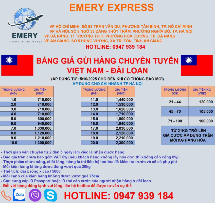 GỬI HÀNG ĐẾN TAIWAN – ĐÀI LOAN TRONG THÁNG 11/2025 TẠI EMERY EXPRESS ![]()