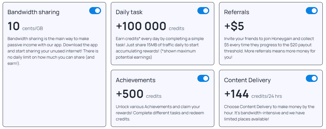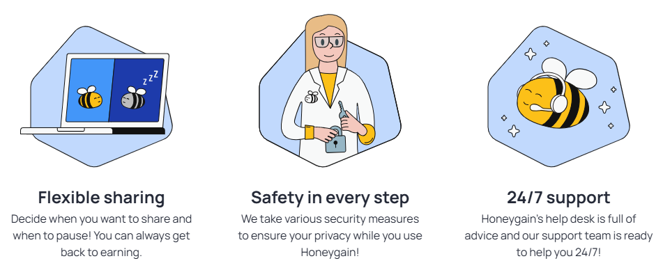 Honeygain is the first-ever app that allows its users to make money online by sharing their Internet connection. Reach your networks’ full potential by getting paid in USD or crypto!
