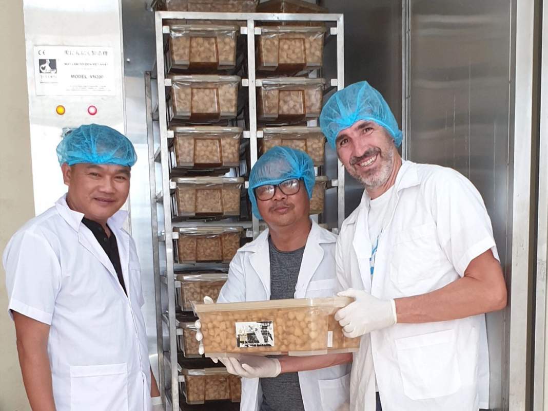 Không dừng lại ở việc cung ứng nguyên liệu thô, công ty Phú Sinh đầu tư vào chế biến sâu để nâng cao giá trị sản phẩm bằng cách nhập khẩu dây chuyền lên men tỏi đen từ Nhật Bản và nghiên cứu công nghệ phù hợp với điều kiện Việt Nam.