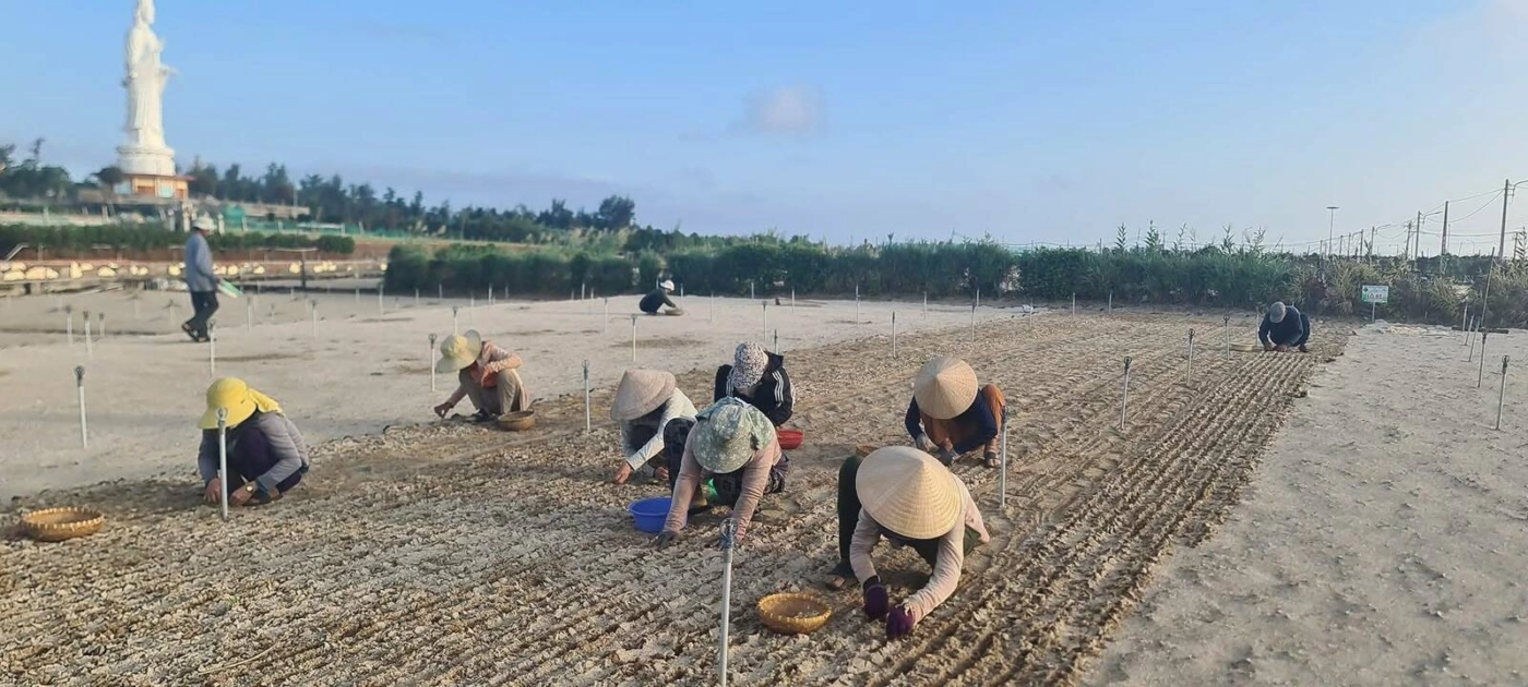 Tuy vậy, theo cách trồng truyền thống của nông dân, cứ 1-2 vụ phải thay đất hoàn toàn. Họ cào bỏ lớp cát biển cũ, vứt đi, rồi lấy cát trắng mới từ bãi biển phủ 1-2 cm lên mặt lớp đất đỏ bazan. “Làm như vậy cả trăm năm nay”, anh Nhật giải thích.